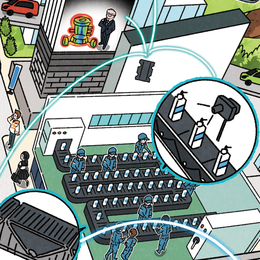駅のホームドアや、車のエンジン部品など、モノを“動かす・伝える・運ぶ”に関わる製品の提供や、工場の製造工程に画像処理システムを導入し、これまで見えなかった検査結果の「見える化」を実現します。
